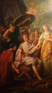 Joseph Marie Ven: Wstrzemięźliwość Scypiona; pogromca Hannibala – Publiusz Korneliusz Scypion Afrykański Starszy, w 209 roku przed Chrystusem pod zdobyciu założonej przez Kartagińczyków Kartageny (rzymskiej Carthago Nova) w Hiszpanii, odmówił przyjęcia pięknej branki i odesłał ją narzeczonemu.