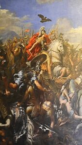Fragment płótna autorstwa Pietro da Cortony (1644-1650) z Muzeum Kapitolińskiego w Rzymie, przedstawiającego bitwę pomiędzy Aleksandrem Wielkim a królem Persji Dariuszem III; zdjęcie autora.