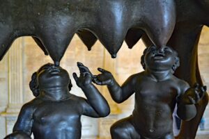 Remus i Romulus karmieni przez Wilczycę Kapitolińską; zdjęcie wykonane przez autora w Muzeum Kapitolińskim w Rzymie.