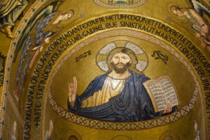 Nasz Zbawiciel jako Sprawiedliwy, Najwyższy Sędzia; mniemam, że każdy prawnik winien mieć Jezusa w sercu, aby kierować się etyką w swej pracy; zdjęcia autor wykonał w kaplicy Pałacu Normanów w Palermo.